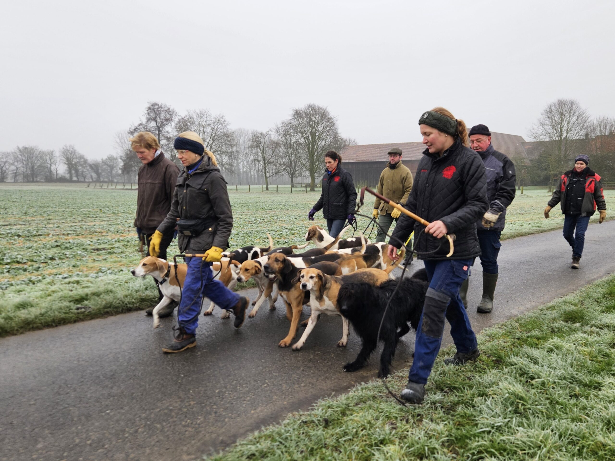 Damit unsere Hunde auch außerhalb der Saison und an jagdfreien Wochenende im Training bleiben, treffen wir uns jeden Samstag zum Hundetraining am Kennel. Beim Hundetraining üben wir insbesondere das Laufen der Hunde im Appell, also das Zusammenbleiben als Gruppe, die von der Equipage geführt wird. Mit Fahrrädern oder zu Fuß machen wir dazu mit einer oder nacheinander mehreren Gruppen von ca. 10 Hunden einen Spaziergang in der Umgebung des Kennels. Im Anschluss gibt es in der Regel noch ein gemütliches Beisammensein, oft mit einem zweiten Frühstück.